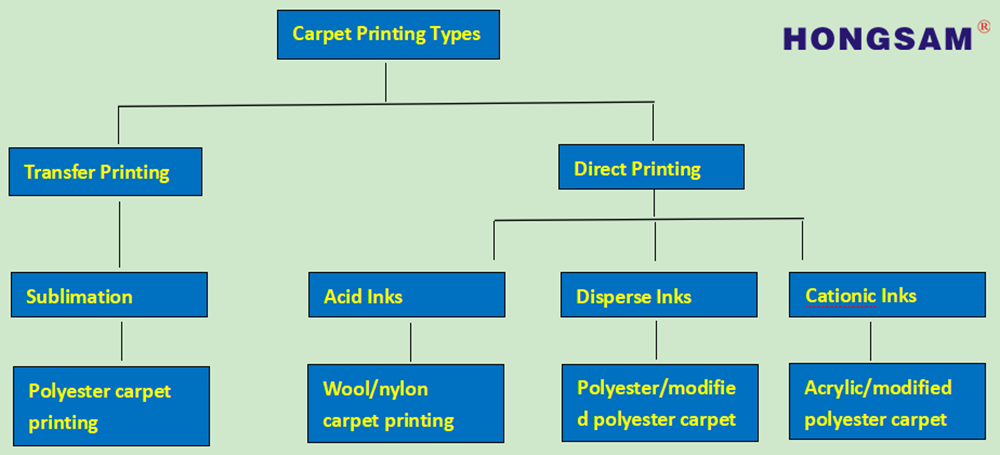 Transfer printing is mainly used for printing flat carpets made of polyester.
