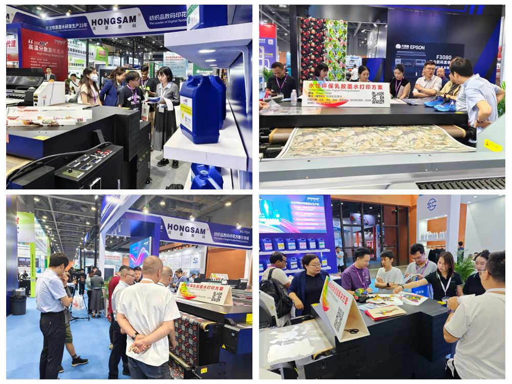 Hongsam Digital is professional in inkjet inks and printing solutions for 23 years. At the ITCPE 2024, Hongsam Digital exhibited its digital printing inks: JETTEXTILE® textile pigment ink, HotMe® disperse dye ink, ReactoMe® reactive dye ink, SilkMate® acid dye ink, Hongsam cationic dye ink, as well as water-based environmentally friendly latex ink printing solutions, covering not only inks and equipment, but also printing solutions that meet the needs of different customers, attracting many visitors.